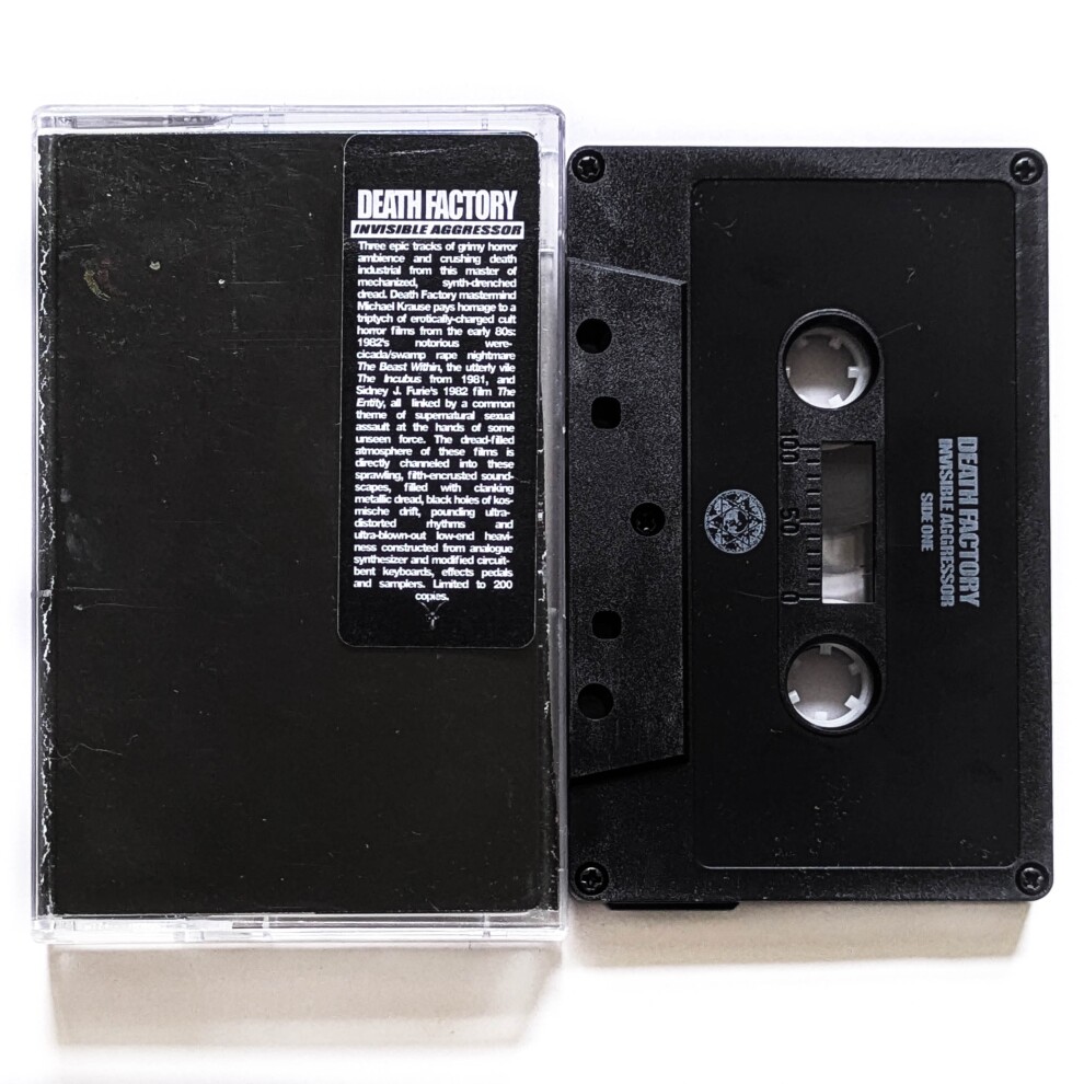 Invisible Aggressor - это три эпических трека мрачного хоррор-эмбиента и сокрушительного дэт-индастриала от этого мастера механизированного, пропитанного синтезатором ужаса. На своей новой ленте для серии C-Blast Infernal Machines мастер Death Factory Майкл Краузе отдает дань уважения триптиху эротически заряженных культовых фильмов ужасов начала 80-х: нашумевшему кошмару 1982 года «The Beast Within» с изнасилованием цикадами и болотом, совершенно мерзкому «The Incubus» 1981 года и фильму Сидни Дж. Фьюри «The Entity» 1982 года. Все три фильма связаны общей темой сверхъестественного сексуального насилия от рук некой невидимой силы. Наполненная ужасом атмосфера этих фильмов напрямую передана в этих трех разросшихся, покрытых грязью звуковых ландшафтах, наполненных лязгающим металлическим ужасом, черными дырами косноязычного дрейфа, колотящими ультраискаженными ритмами и сверхвзрывной тяжестью, созданной на основе аналоговых синтезаторов и модифицированных схемотехнических клавиатур, педалей эффектов и сэмплеров.